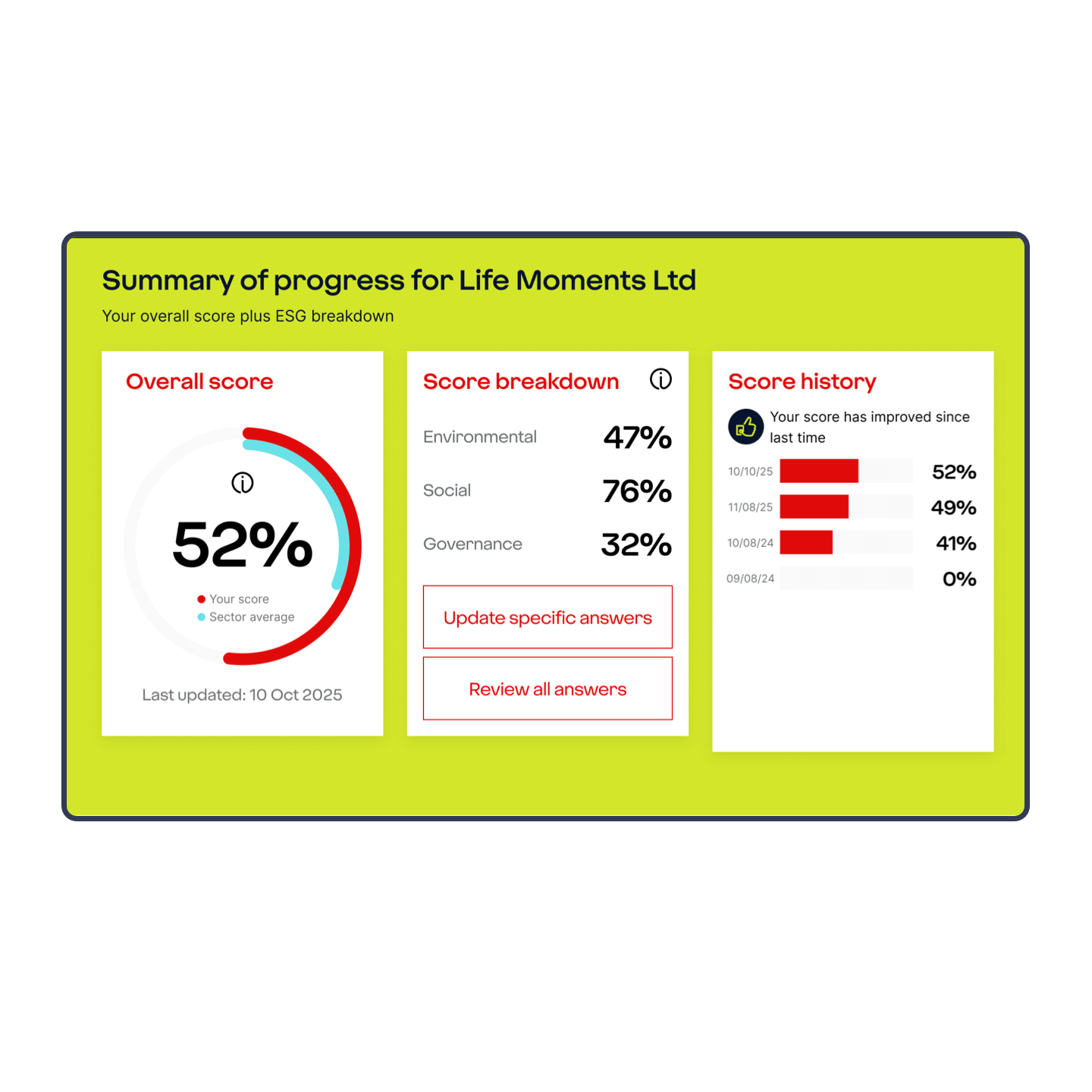 - Understand more about the environmental and social impact of your business activities, identify high priority goals and measure your progress against your targets.