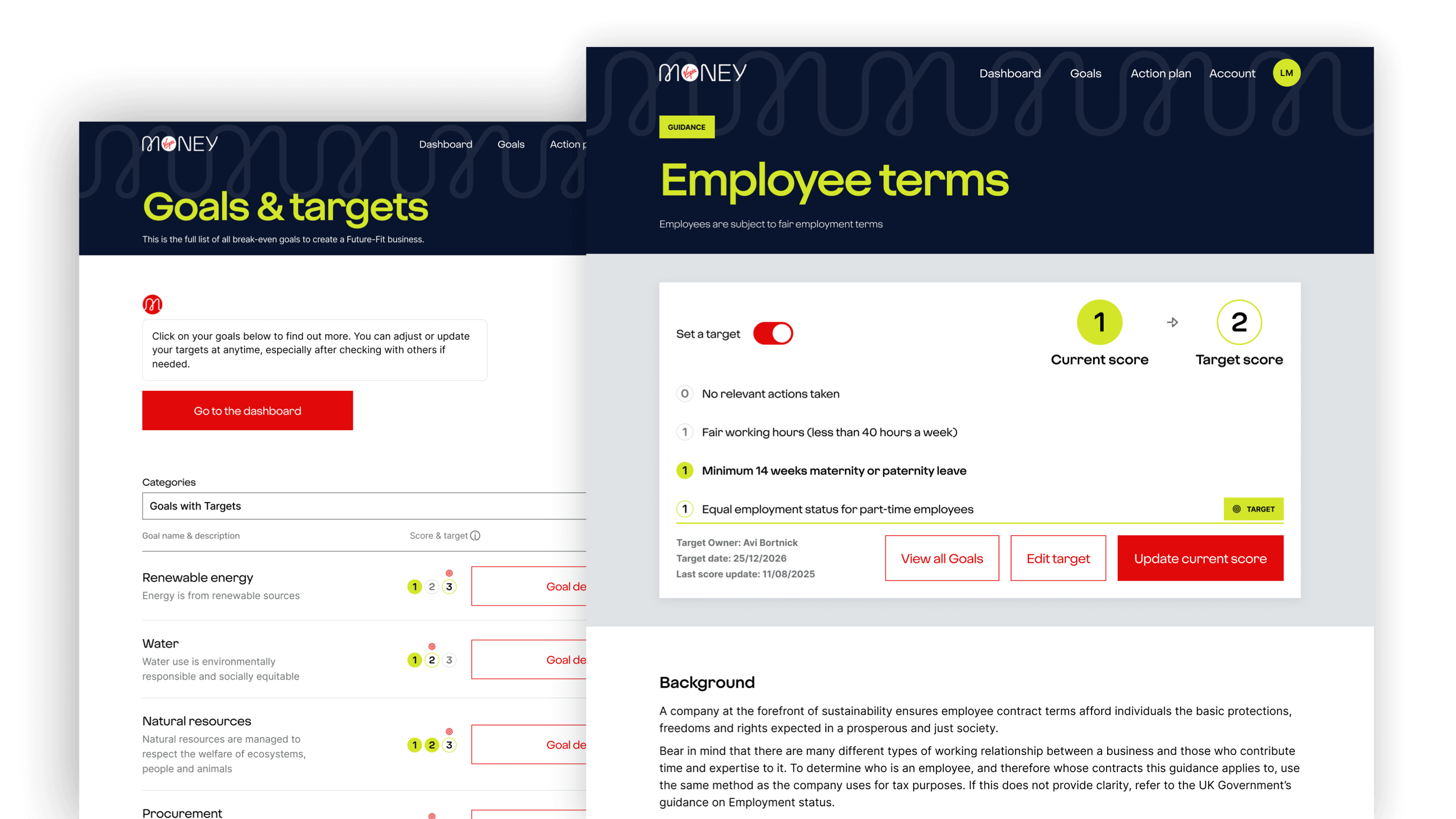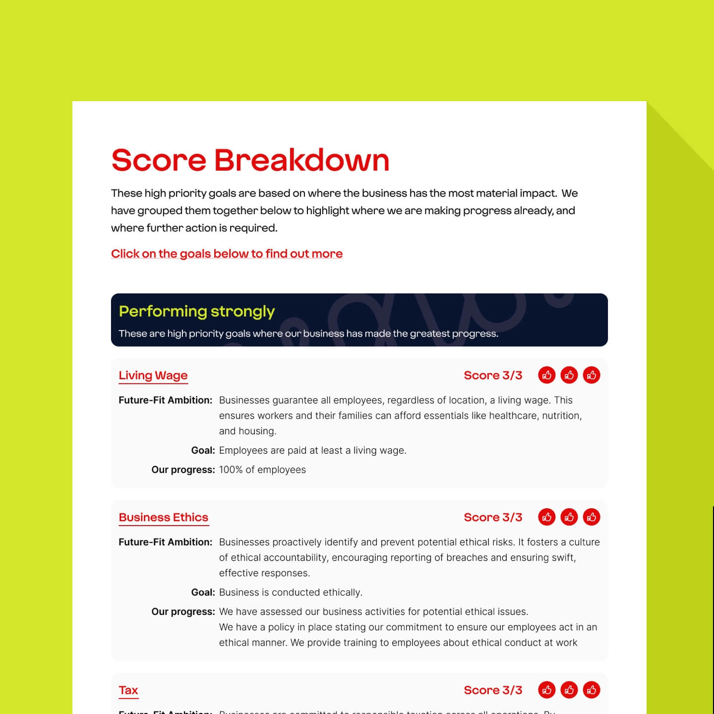 We’ve partnered with Future-Fit Link opens in a new window, a non-profit organisation, so that you can discover the impact of your business on the environment and wider society.