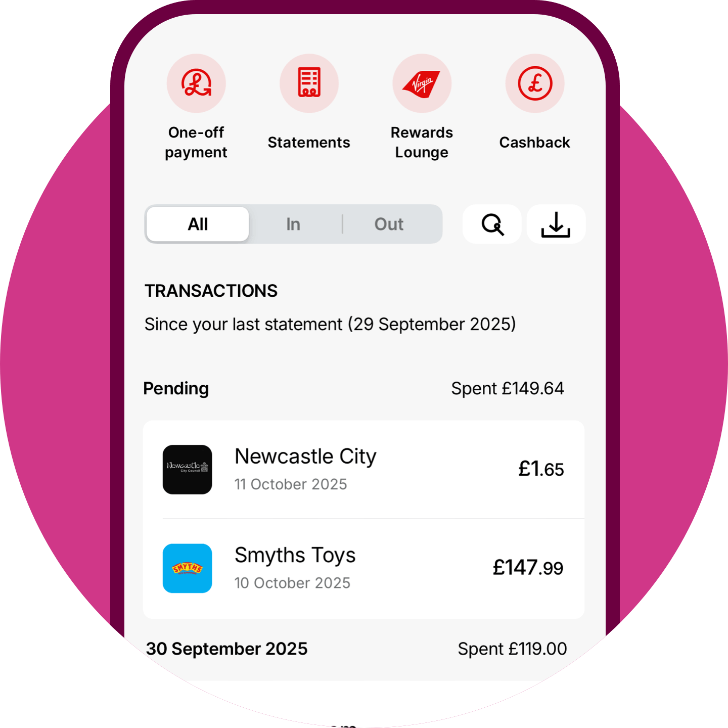 Head to the App Store or Google Play and search 'Virgin Money Credit Card app.'