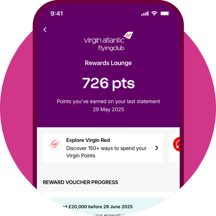 Got a Virgin Atlantic credit card? Head to your Virgin Atlantic Rewards Lounge to see your Virgin Points clock up. Follow your progress towards a reward voucher and earn points by referring friends.