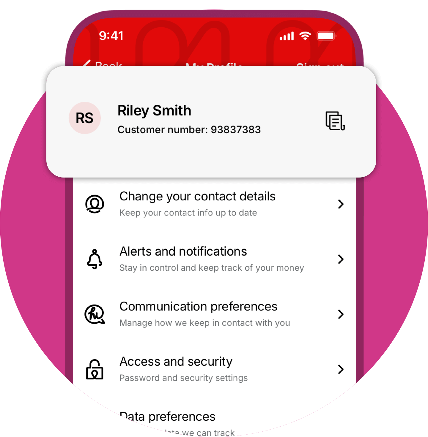 Customer number in the app