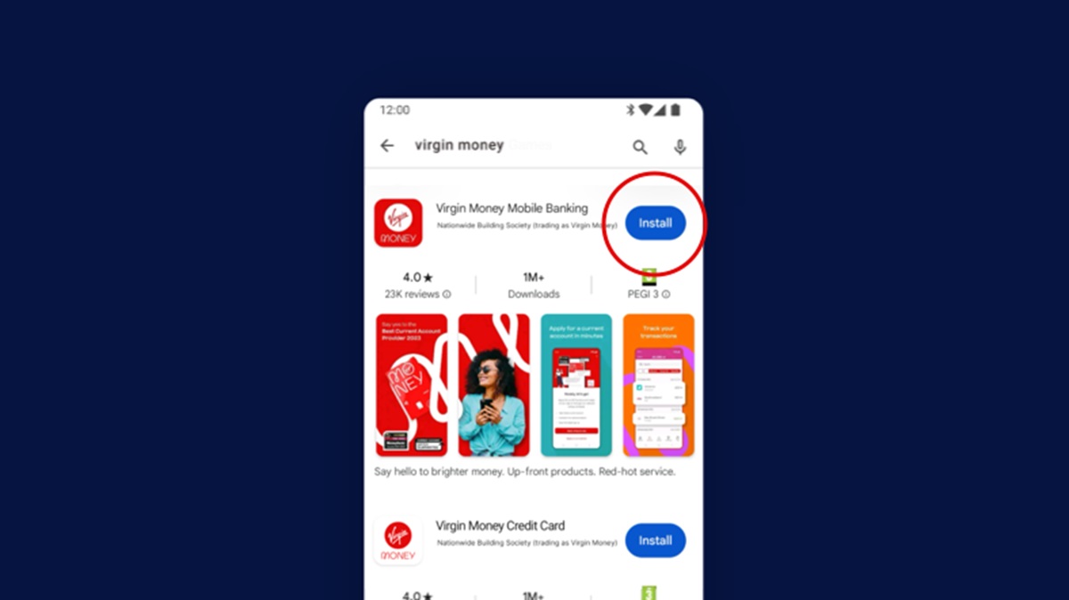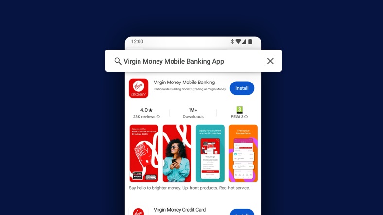 Download the Virgin Money Mobile App on Google Play.