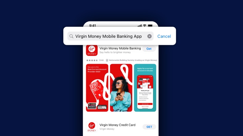2. Use the search bar to look for the Virgin Money Mobile Banking App