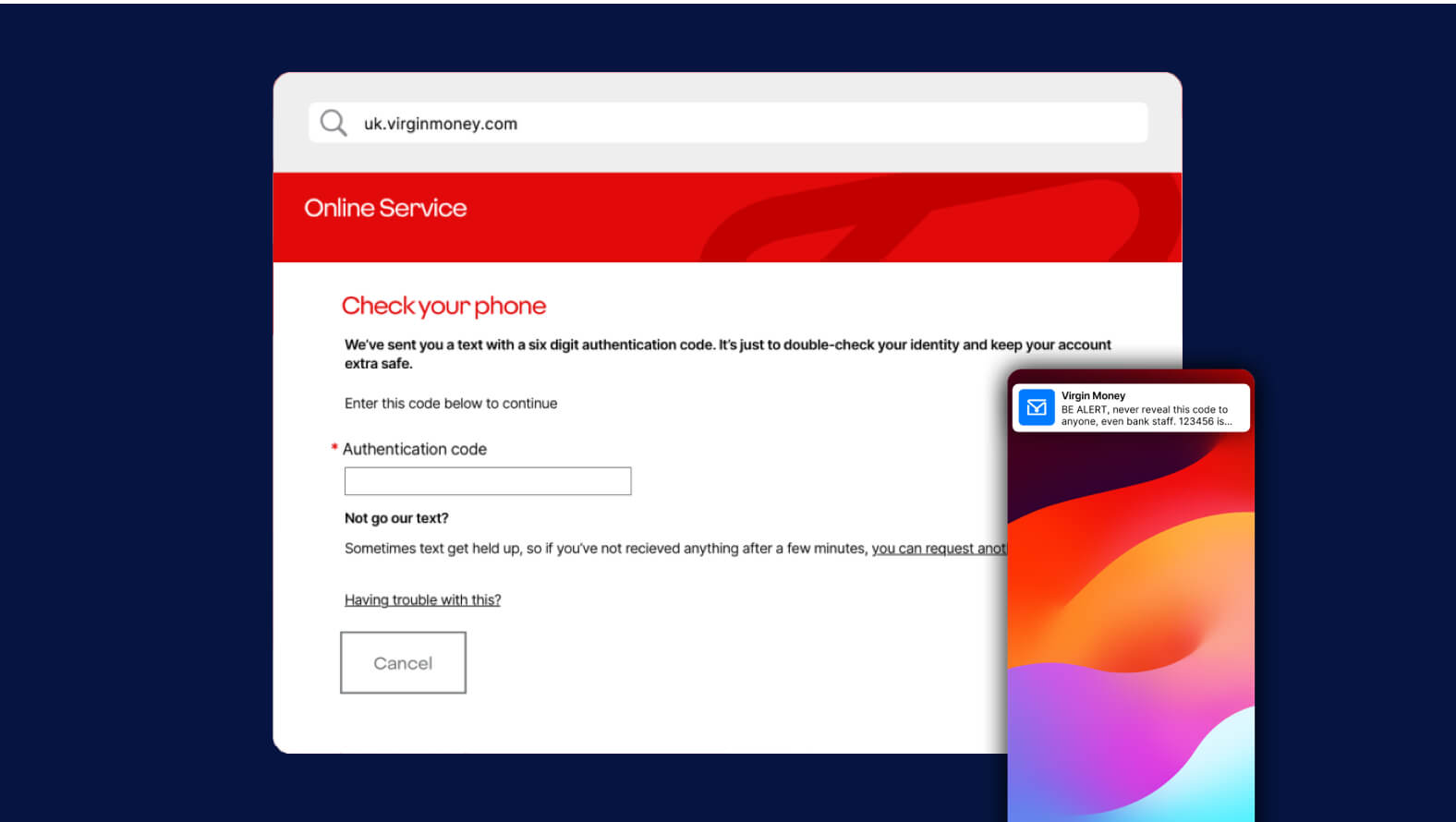 10. You’ll be sent an SMS containing a 6 digit authentication code