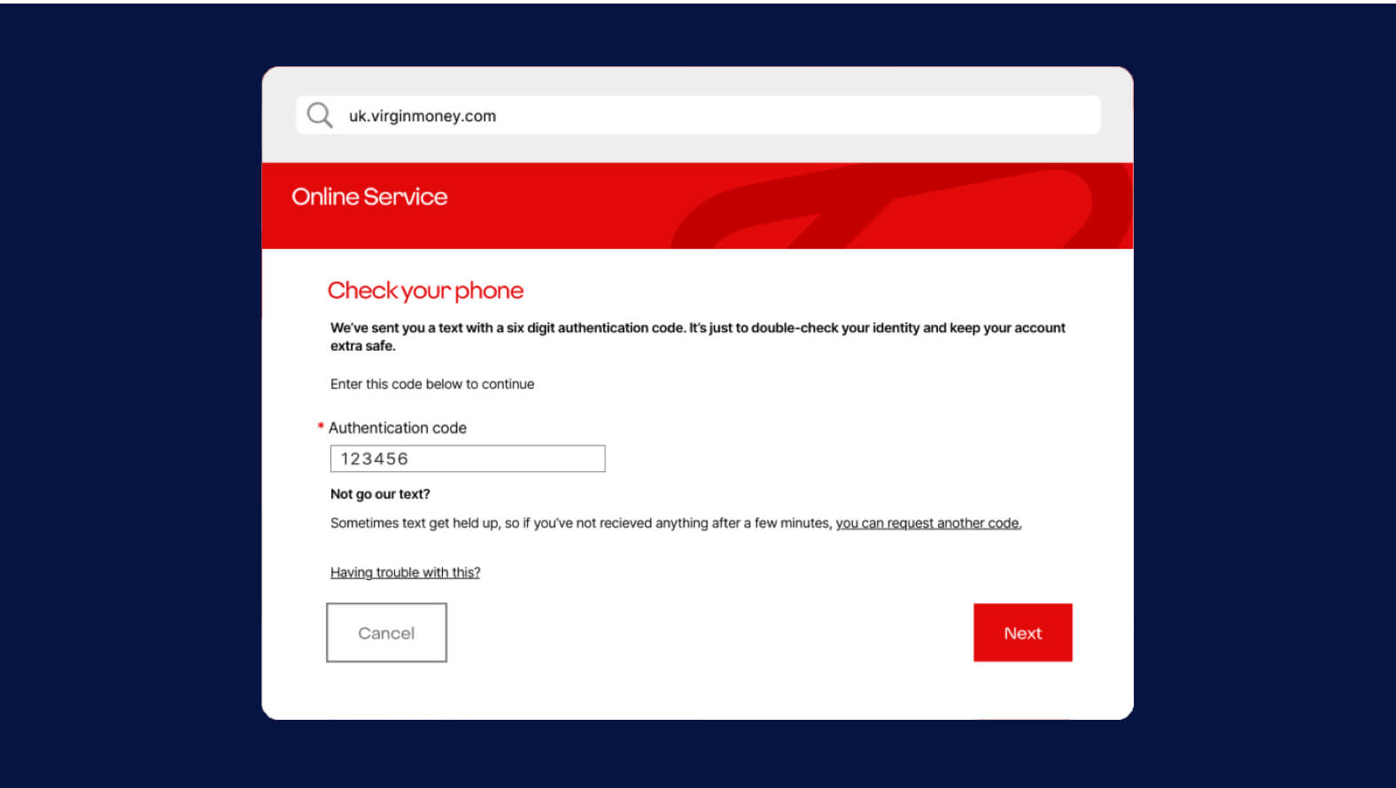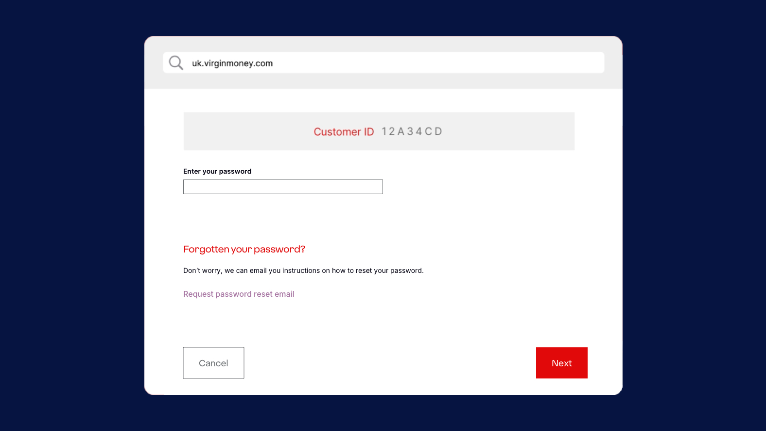 7. The Virgin Money website will open and you'll be asked for your customer ID