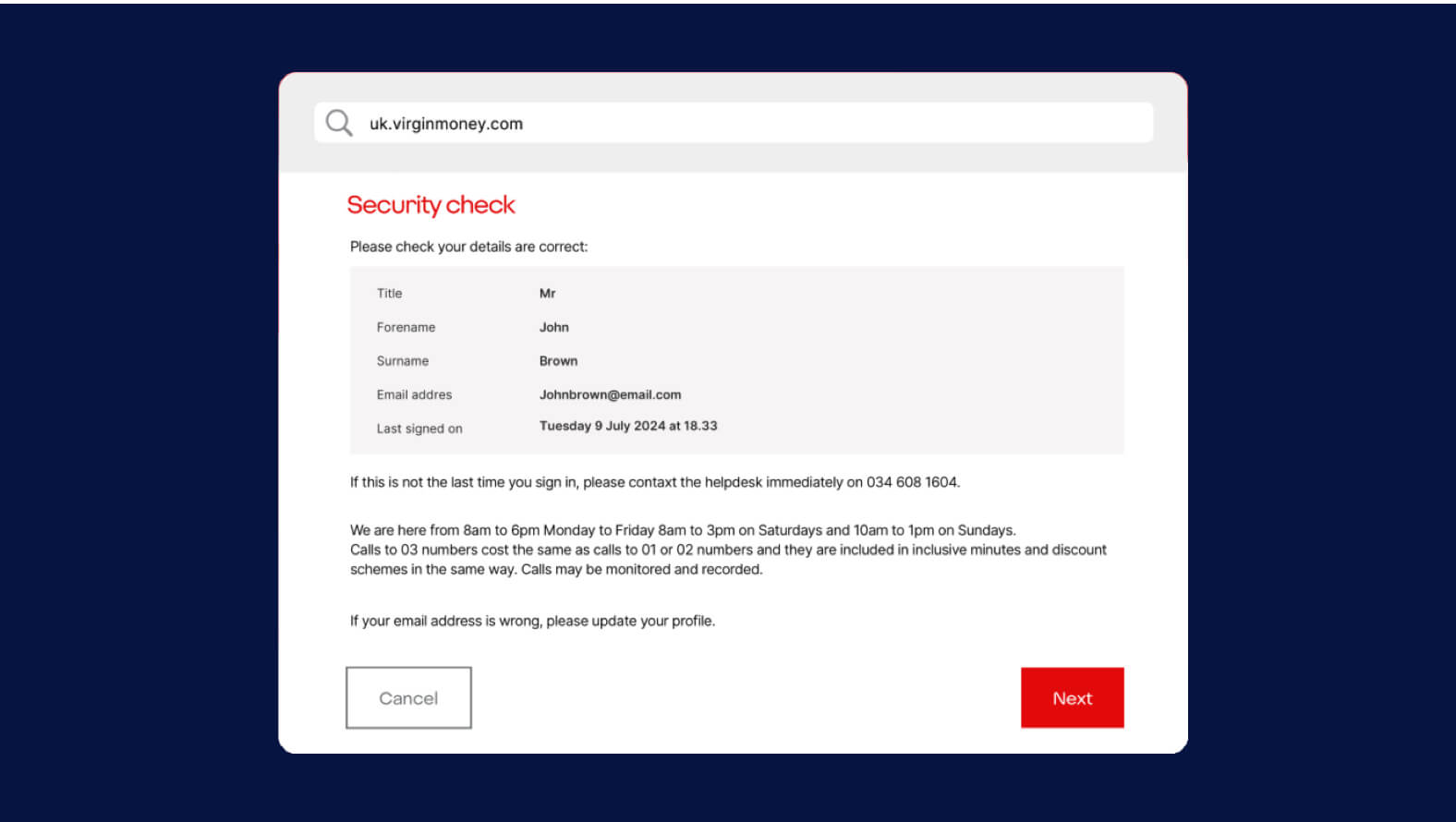 13. We'll do a security check and ask you to confirm your details. If your details are correct, select 'next'.