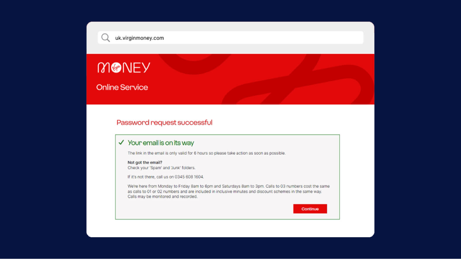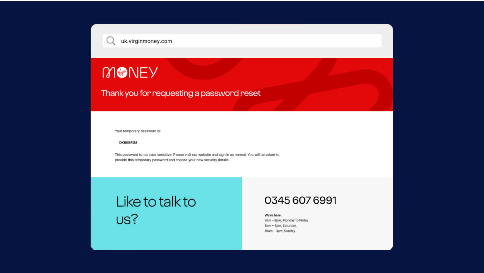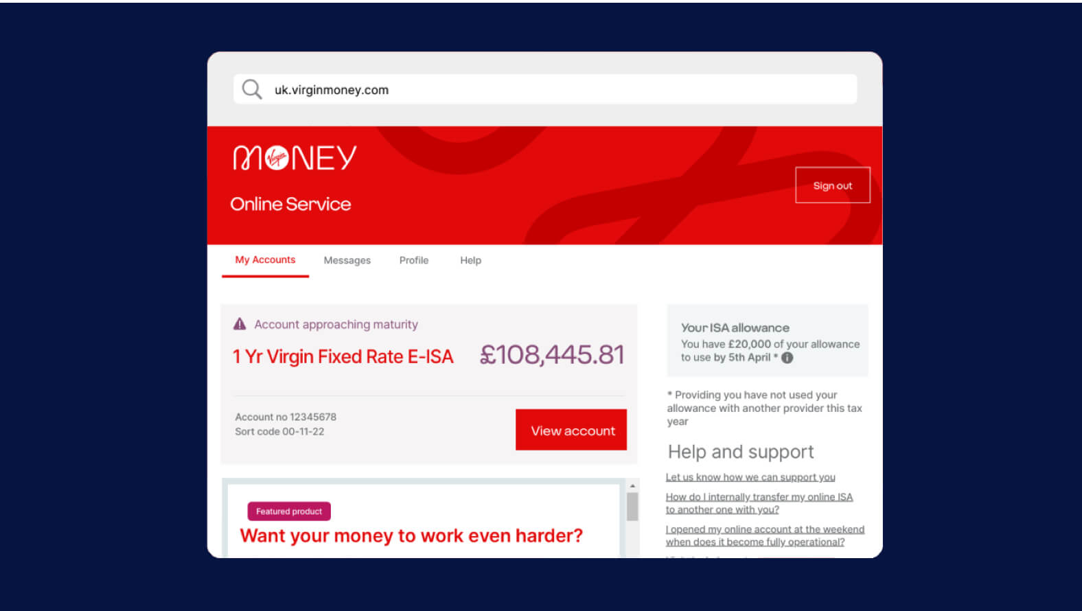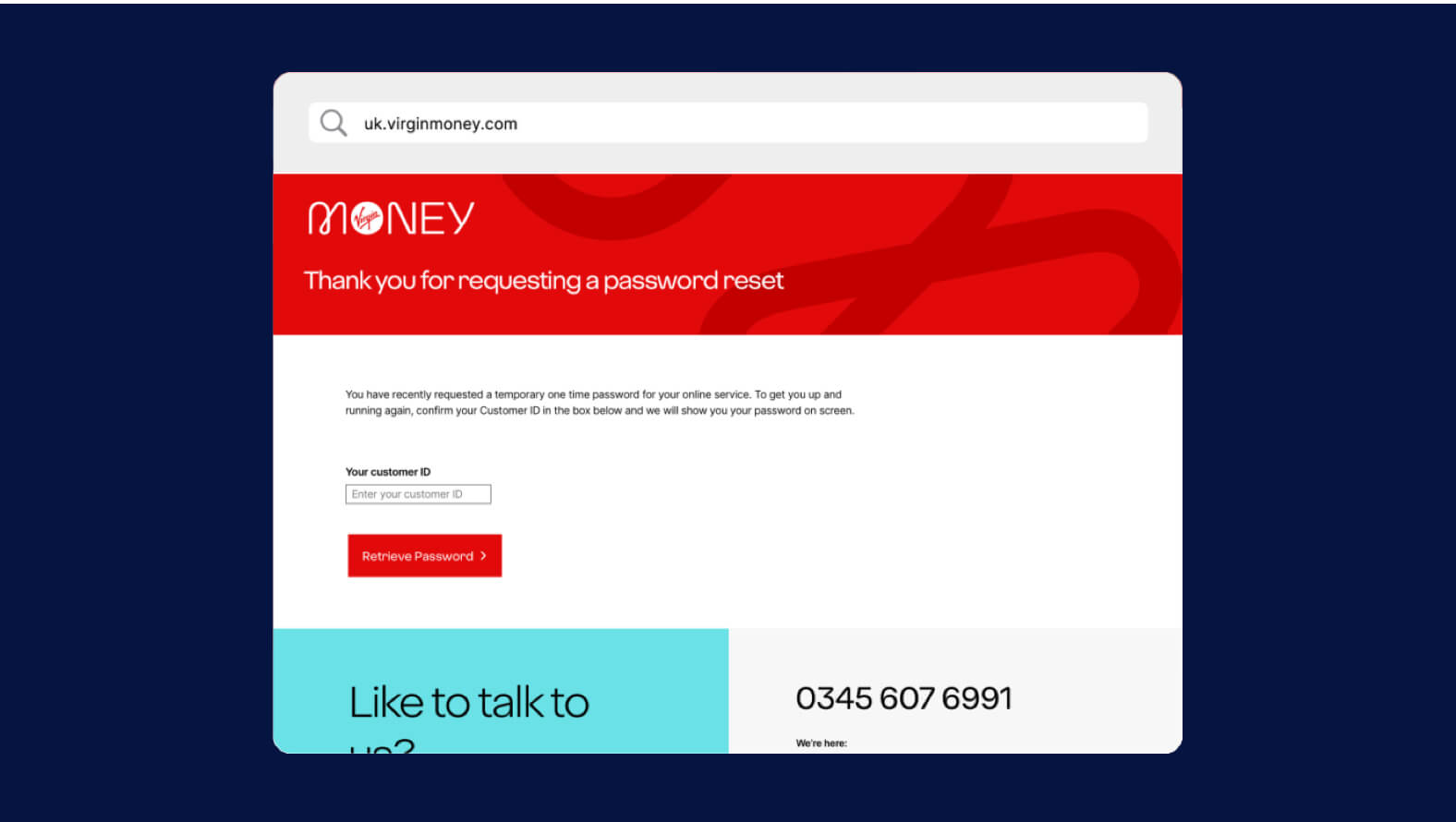 9. Go back to the Virgin Money homepage and sign into your account using your temporary password