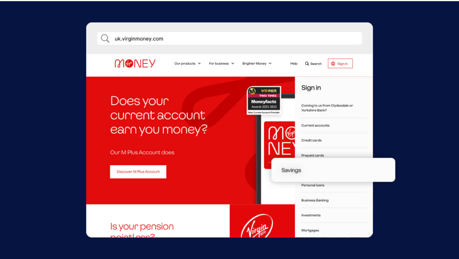 2. Select the 'Sign in' button in the menu and choose 'Savings'